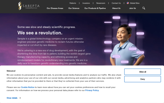 Description: We are focused on the development of precision genetic medicines to treat rare neuromuscular and central nervous system diseases. Learn more about Sarepta.