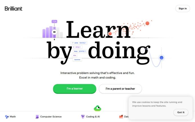 Description: Guided interactive problem solving that’s effective and fun. Try thousands of interactive lessons in math, programming, data analysis, AI, science, and more.