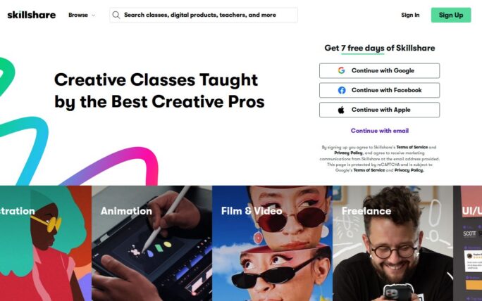 Description: Skillshare is a learning community for creators. Anyone can take an online class, watch video lessons, create projects, and even teach a class themselves.