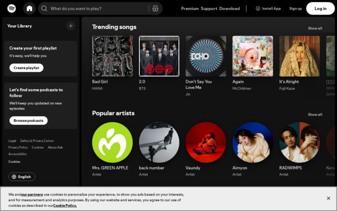 Spotify 2026-04-06 Posted in Digital Entertainment 0 Likes 13 Views Share: XFacebookPinterestRedditVKDiggLinkedinMix Source URL: https://www.spotify.com/ Captured on: 2026-03-23 18:53 (JST) Description: Related Articles 0 6 Nielsen Norman Group 0 6 Studio Ghibli 0 6 SEGA SAMMY HOLDINGS 0 19 Universal Pictures
