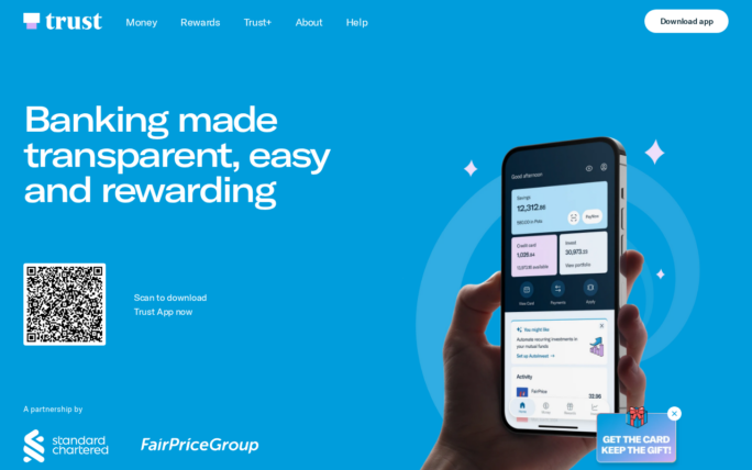 Trust Bank Singapore is a digital bank backed by Standard Chartered and FairPrice Group. Learn more about the banking and finance products we provide today.