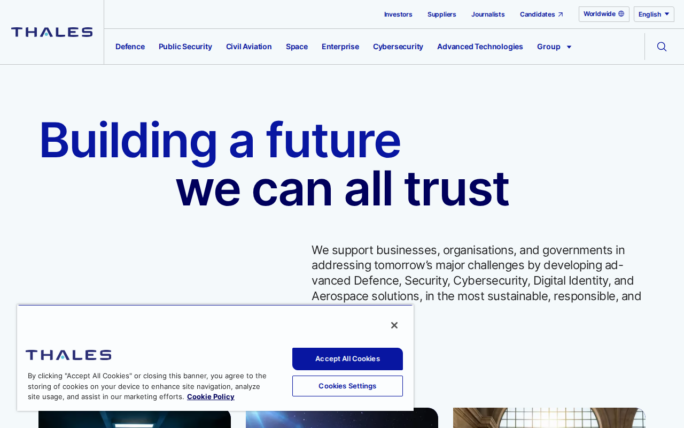 Thales Group 2026-04-07 Posted in Government & Public Sector 0 Likes 18 Views Share: XFacebookPinterestRedditVKDiggLinkedinMix Source URL: https://www.thalesgroup.com/ Captured on: 2026-03-25 23:08 (JST) Description: Related Articles 0 16 Booz Allen 0 7 NASA 0 12 California State Portal 0 45 デジタル庁