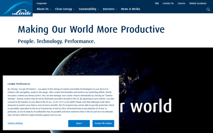 Description: Leading global industrial gases and engineering company making customers more successful and helping to sustain, decarbonize and protect our planet.