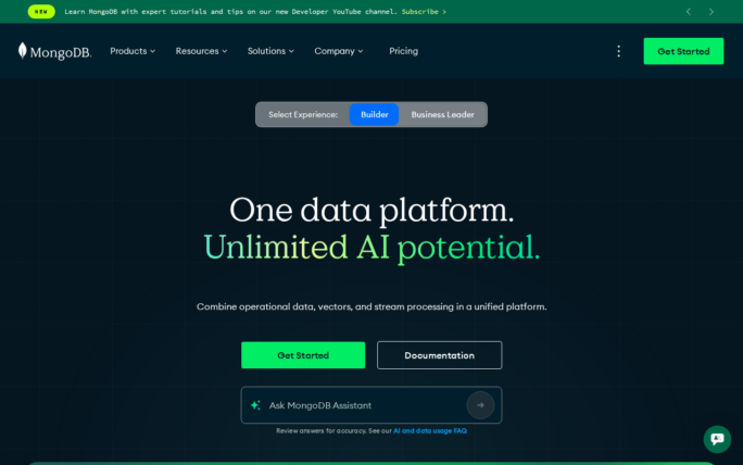 Description: Get your ideas to market faster with a flexible, AI-ready database. MongoDB makes working with data easy.