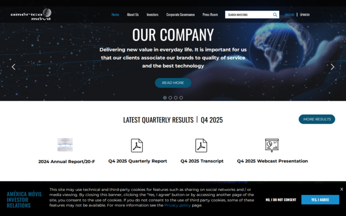 América Móvil 2026-04-04 Posted in Telecommunications 0 Likes 11 Views Share: XFacebookPinterestRedditVKDiggLinkedinMix Source URL: https://www.americamovil.com/ Captured on: 2026-03-26 22:54 (JST) Description: Related Articles 0 6 Verizon 0 9 MTN 0 48 KDDI株式会社――Tomorrow, Together 0 10 SK telecom